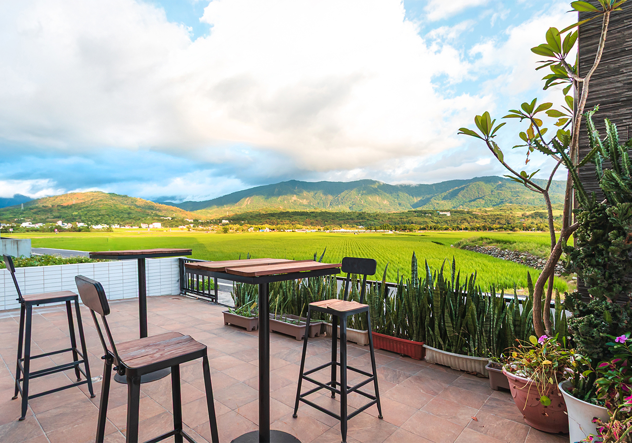 【水也上居house】位於台東池上鄉,坐在小院落的高腳椅上看一片無邊無垠的稻浪起伏,風吹起的時候彷彿耳邊會響起那首《稻香》。客廳的窗框在四季流轉之間像是會自動切換的梵谷名畫,美不勝收。 台東池上的稻田是一年二收,常年旅遊都能看到稻穗的翠綠與金黃,即使尚未插秧,薄薄水面映照藍天白雲也別有一番風味。 民宿設有電梯、遊戲區、兒童澡盆,開放式廚房可提供簡易的餐點製作,讓帶著小孩出門的你更省力、省心。